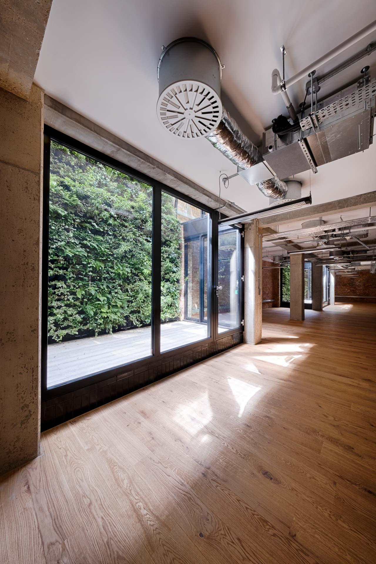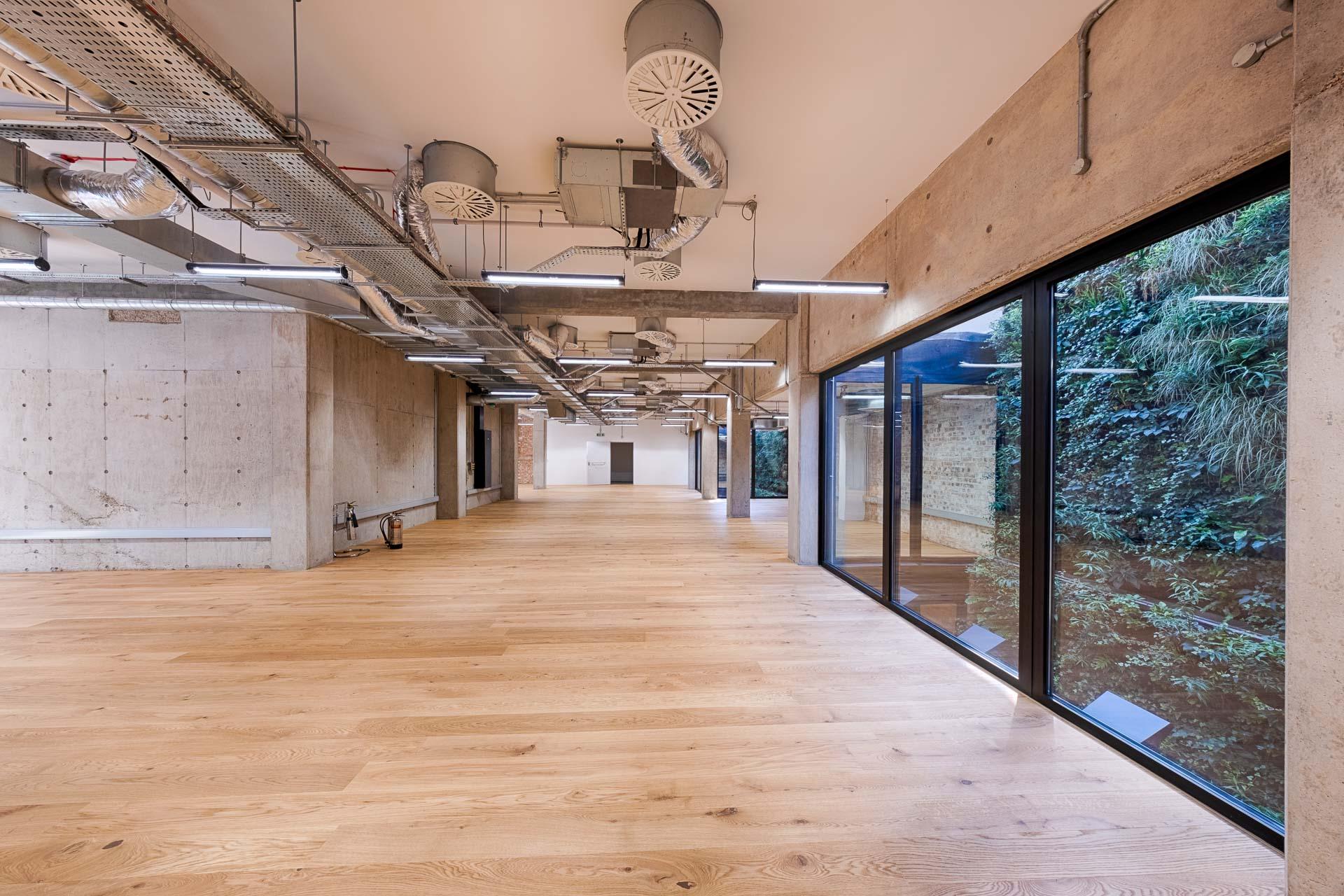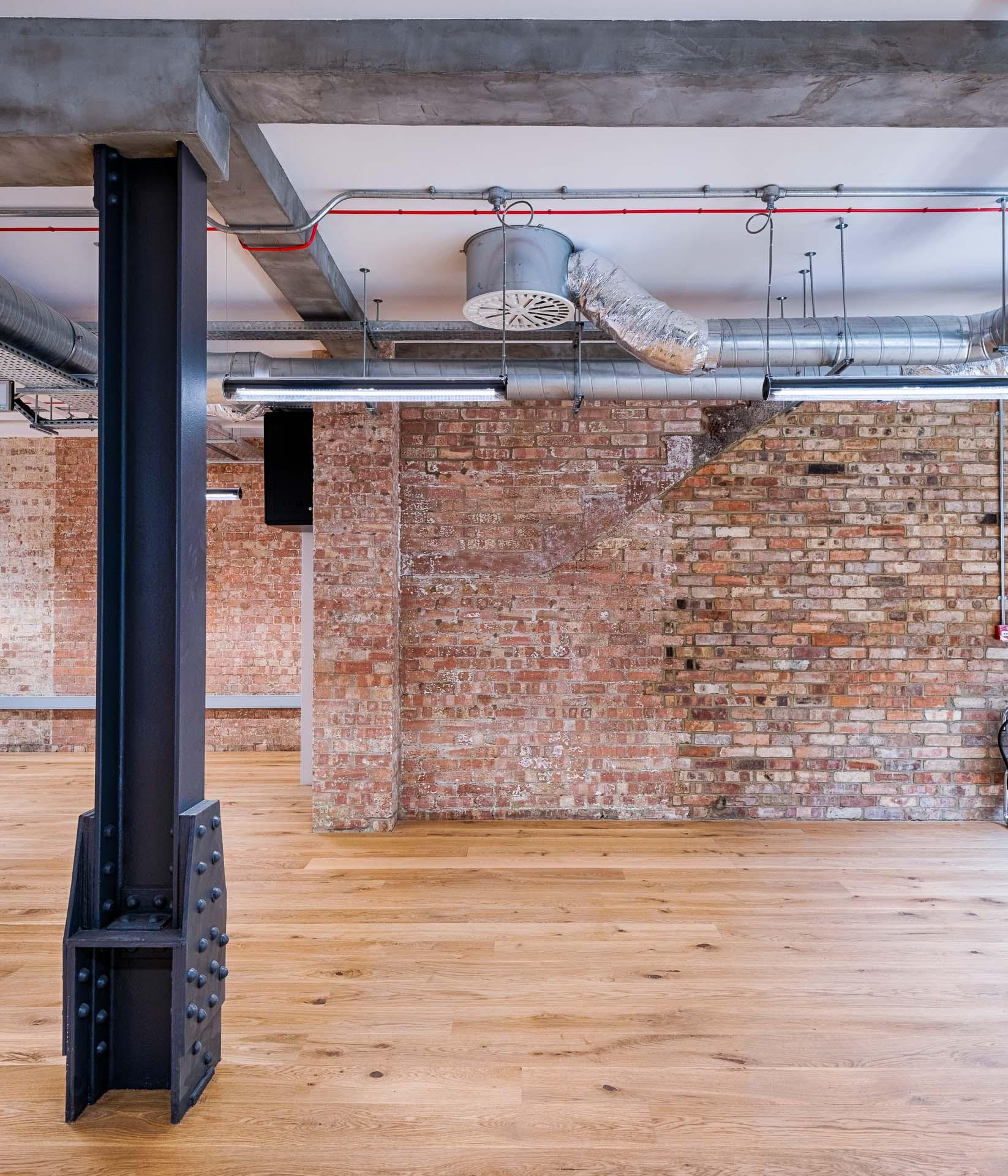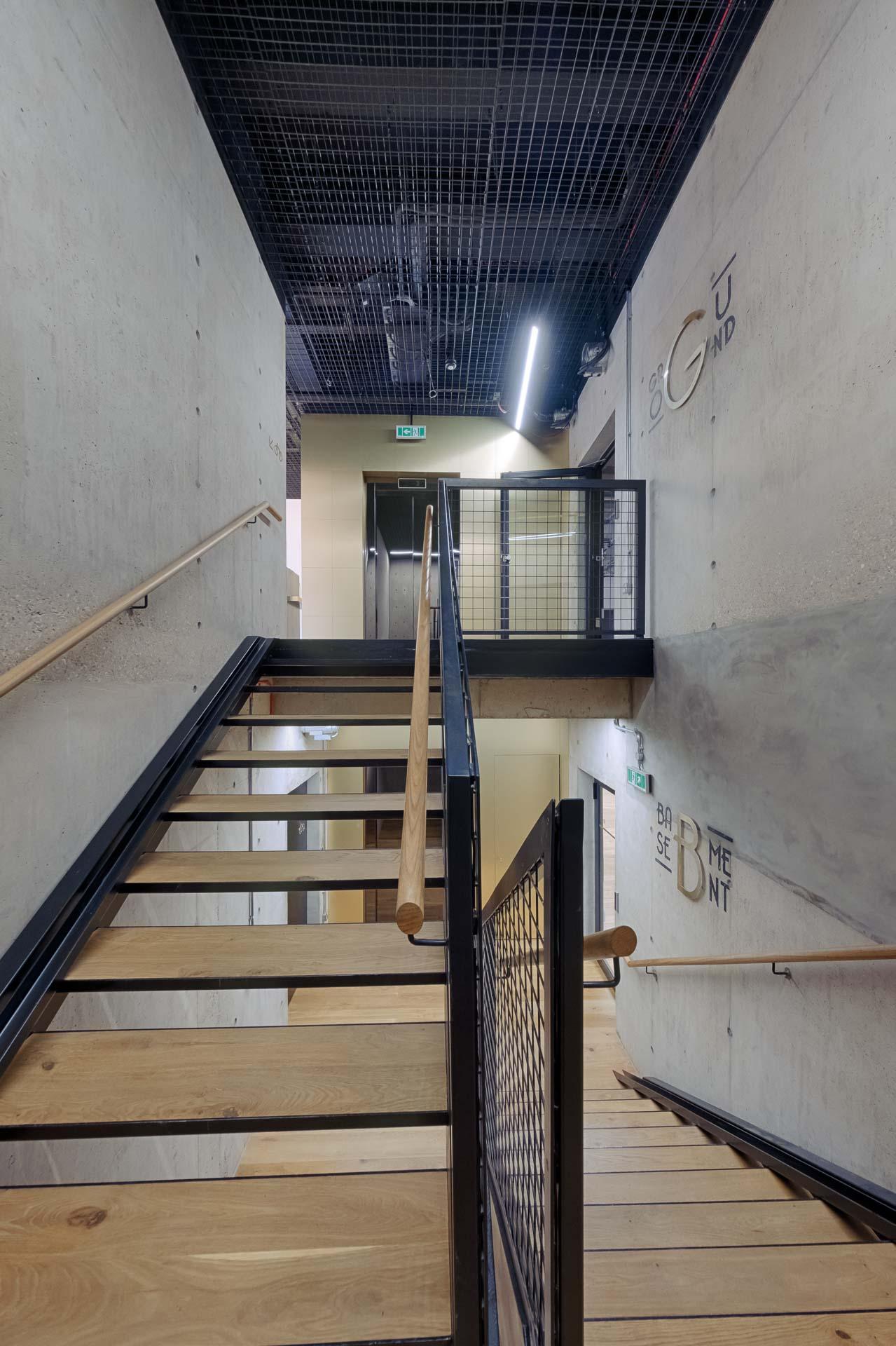 Ponadto w budynku pojawiły się zewnętrzne zielone ściany, a także budki lęgowe dla ptaków. Wszystkie elementy wyposażenia, a także stalowe i betonowe słupy konstrukcyjne pozostały widoczne, nadając wnętrzu industrialny charakter. Efekt ten został wzmocniony poprzez odsłonięcie oryginalnych płytek i ceglanych ścian. Całość dopełniło proste oświetlenie inspirowane tradycyjnymi lampami przemysłowymi. Przestrzeń ma otwarty układ, który sprzyja nowym funkcjom coworkingowym budynku.
