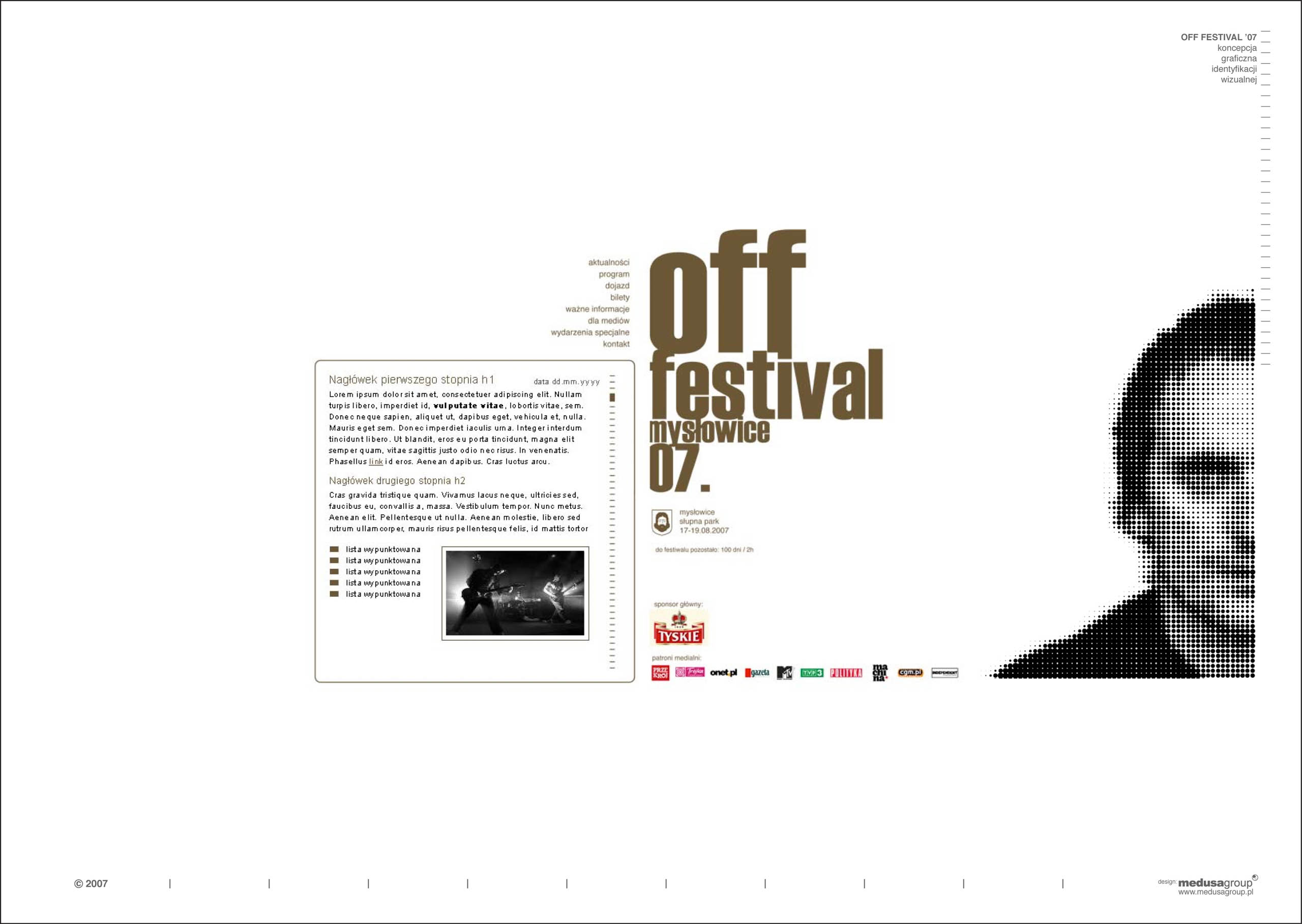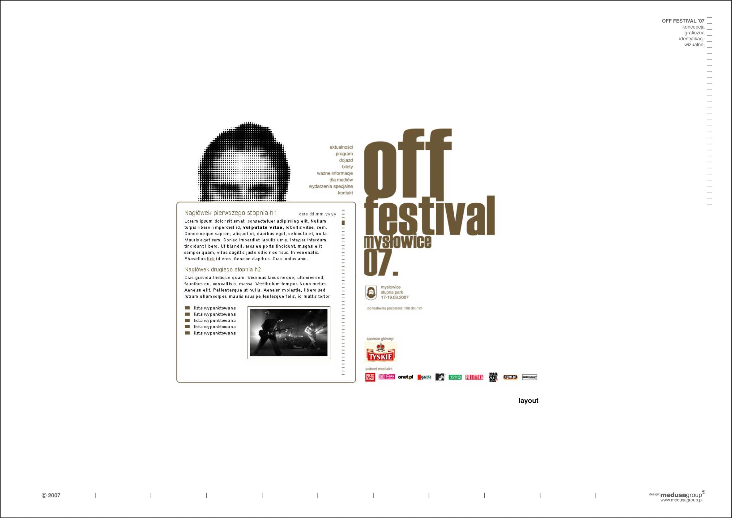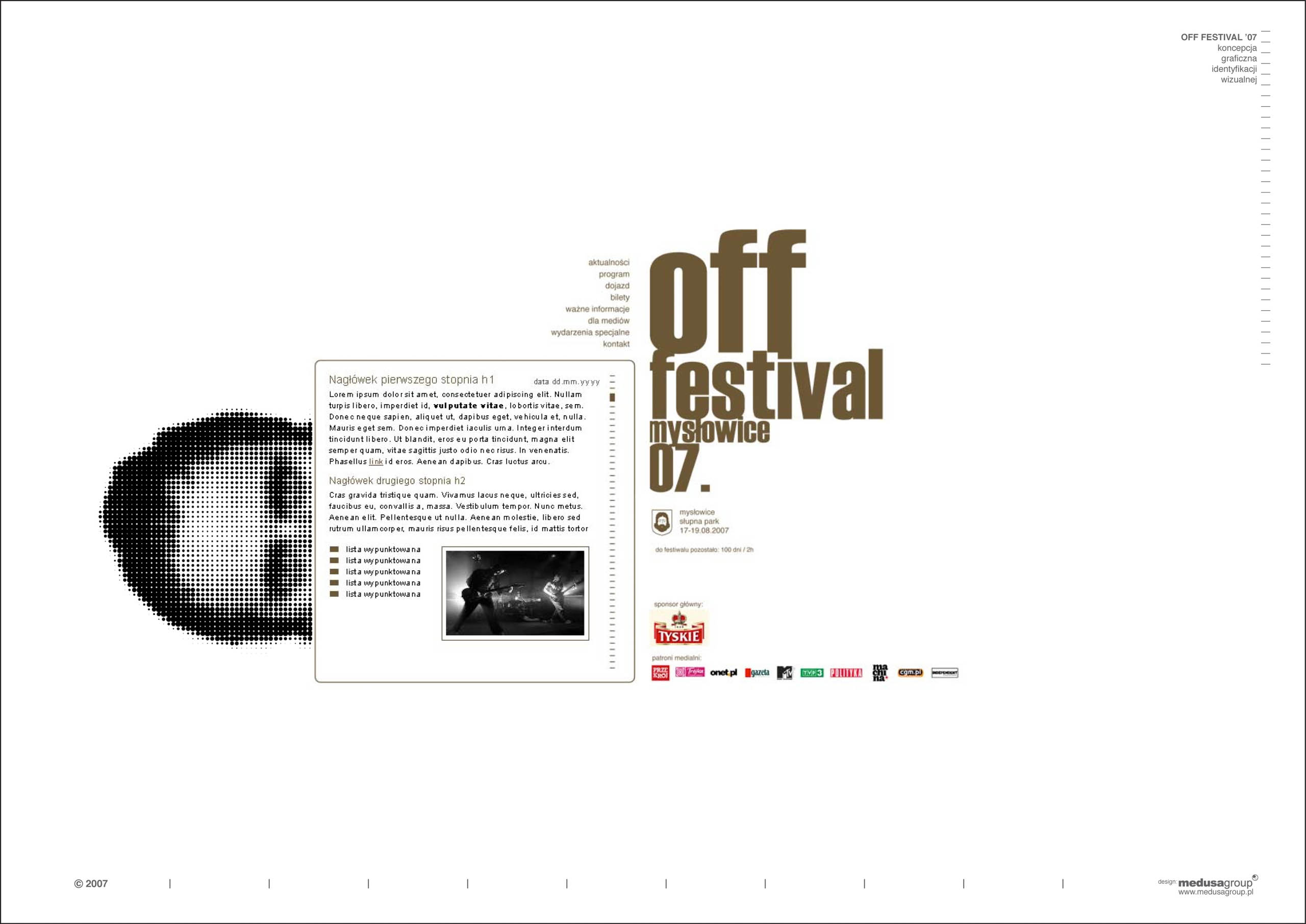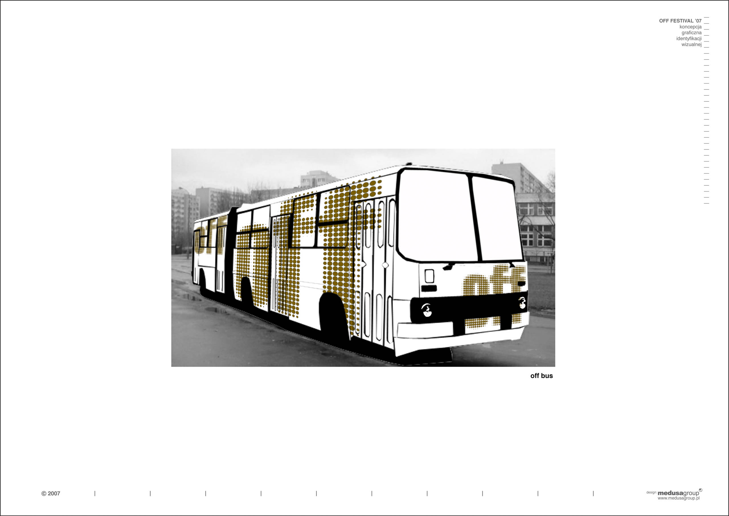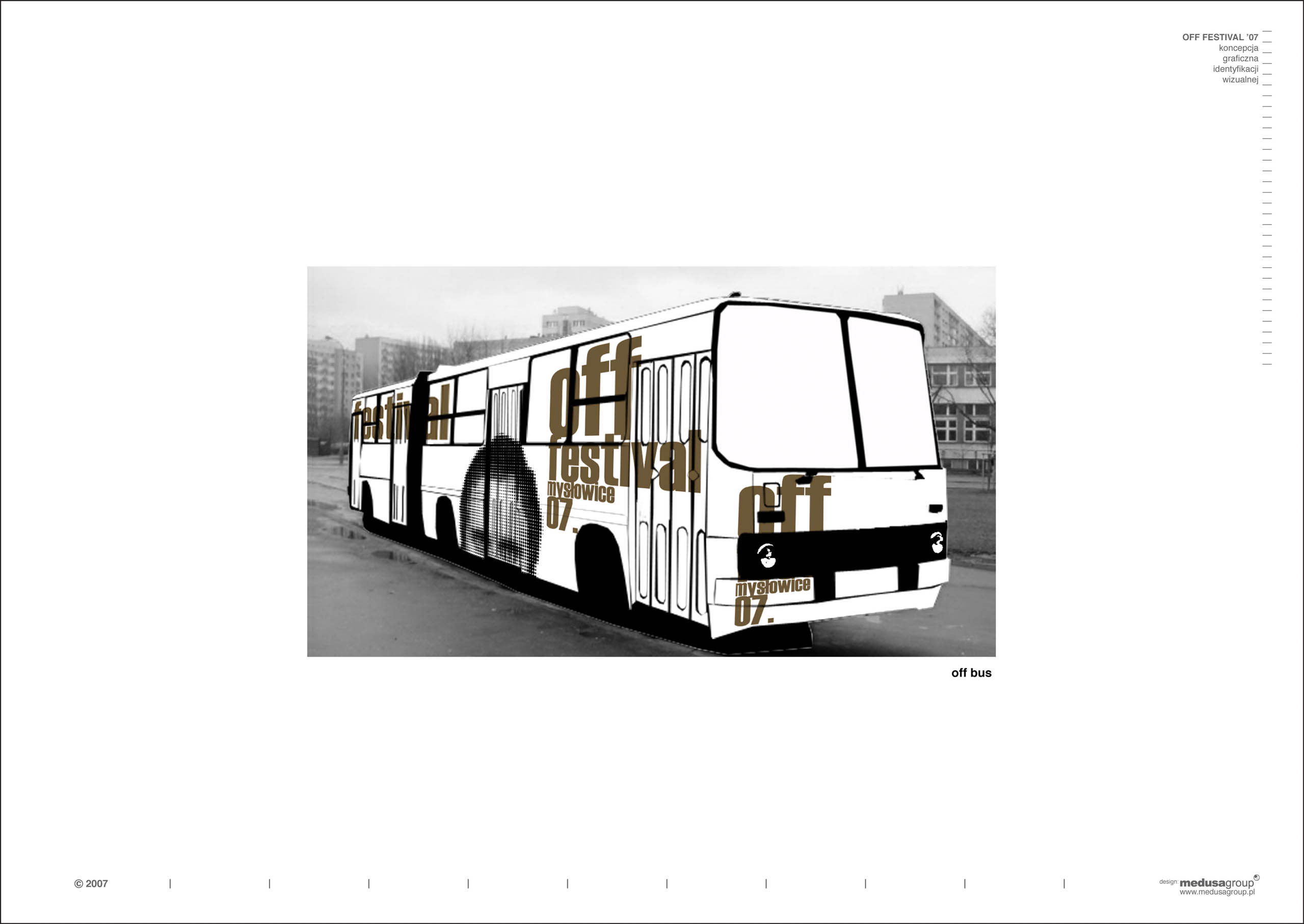 off festival 2007 Identyfikacja wizualna festiwalu muzycznego lokalizacja: Mysłowice architekci: Przemo Łukasik, Łukasz Zagała współpraca autorska: Dominik Jaksik inwestor: Off Festival projekt: 2007