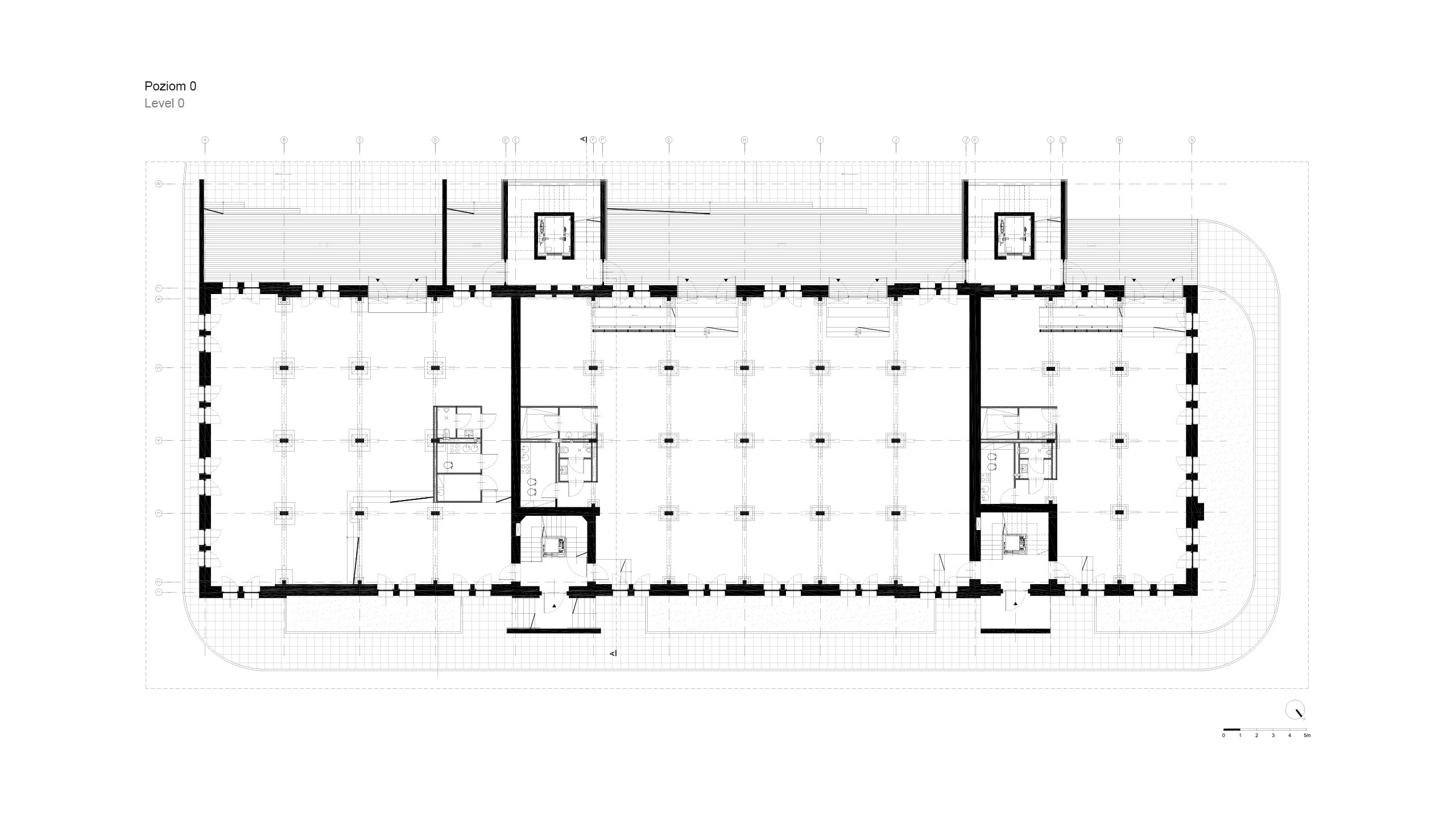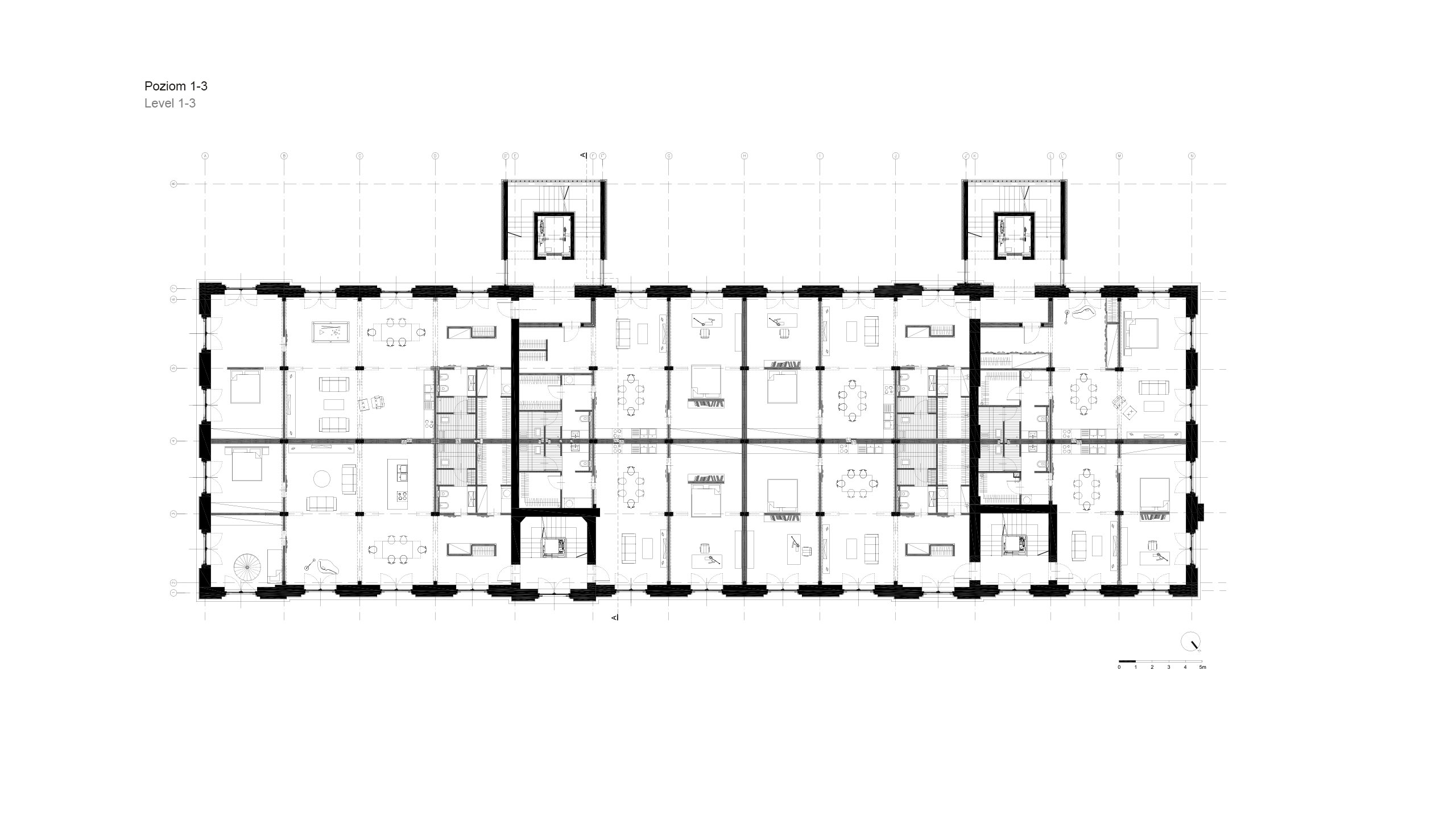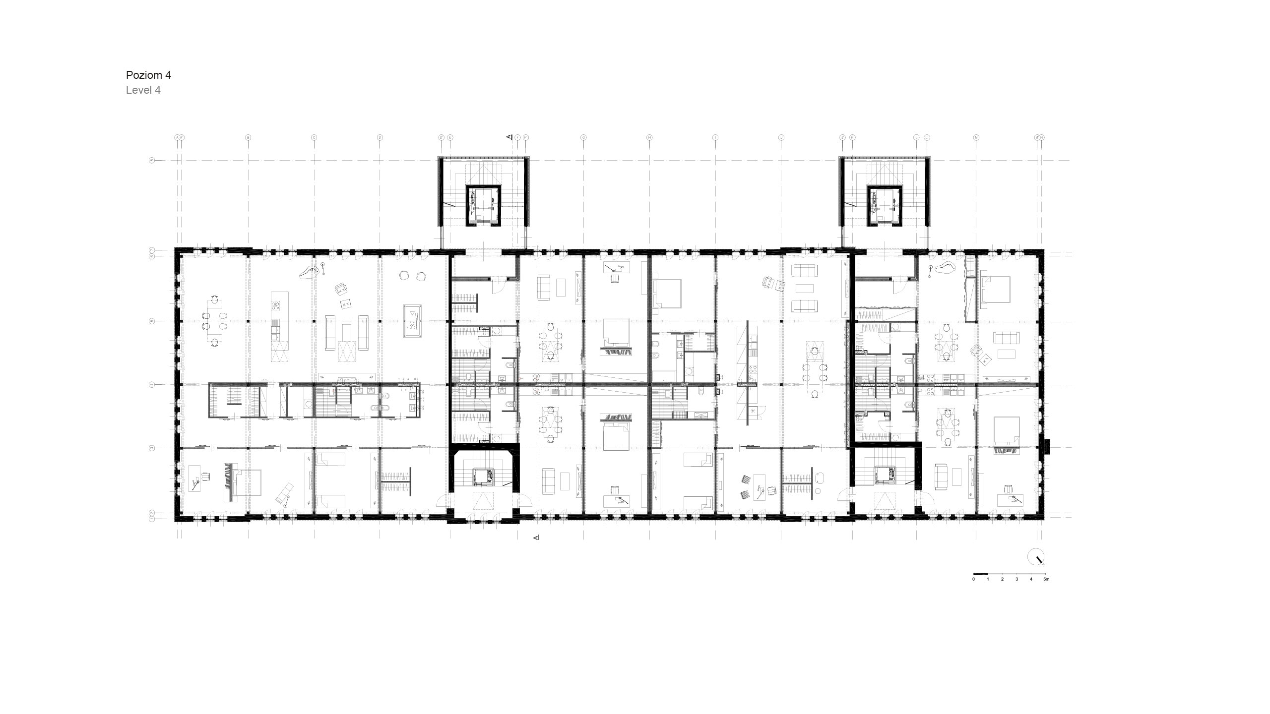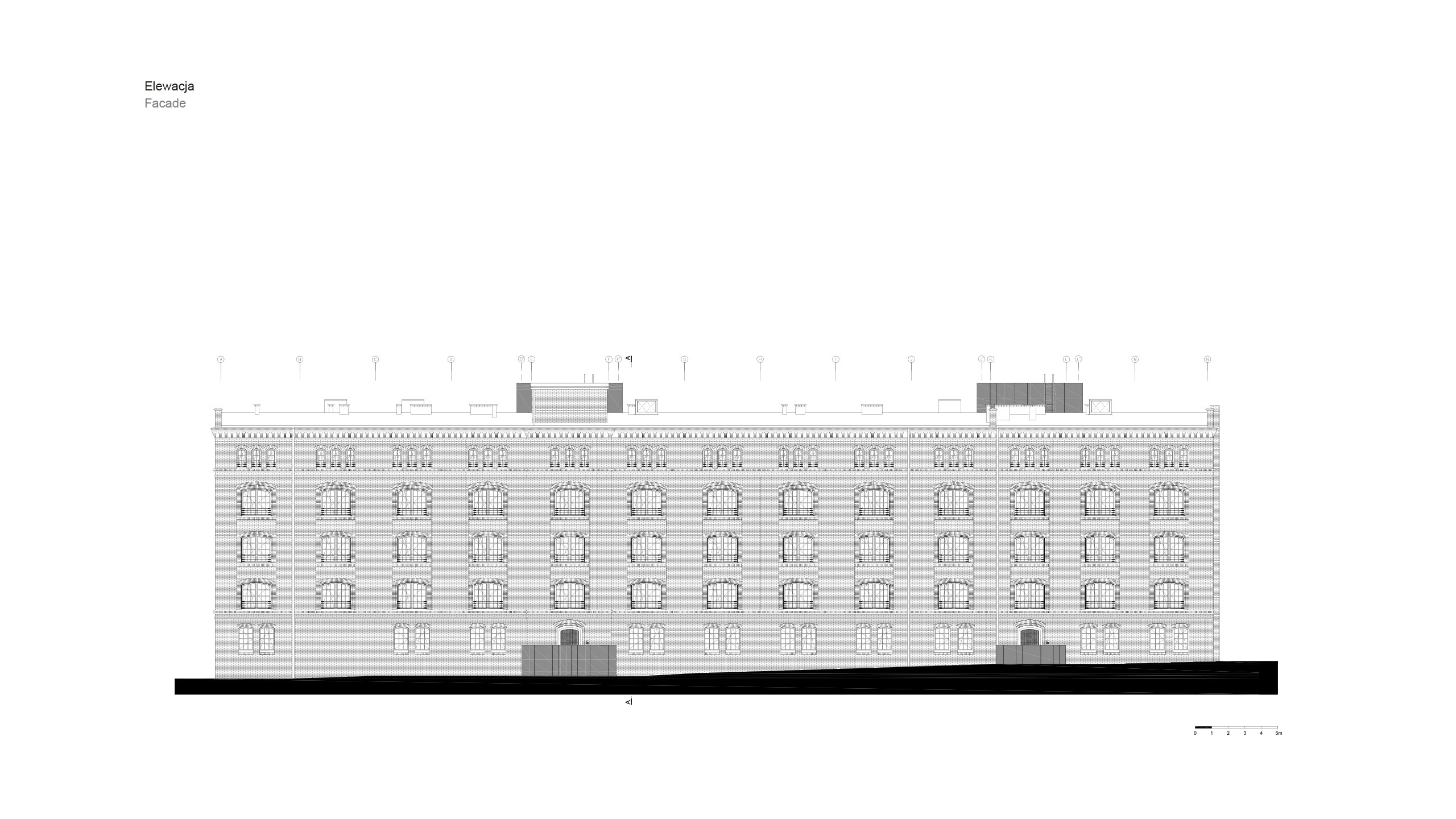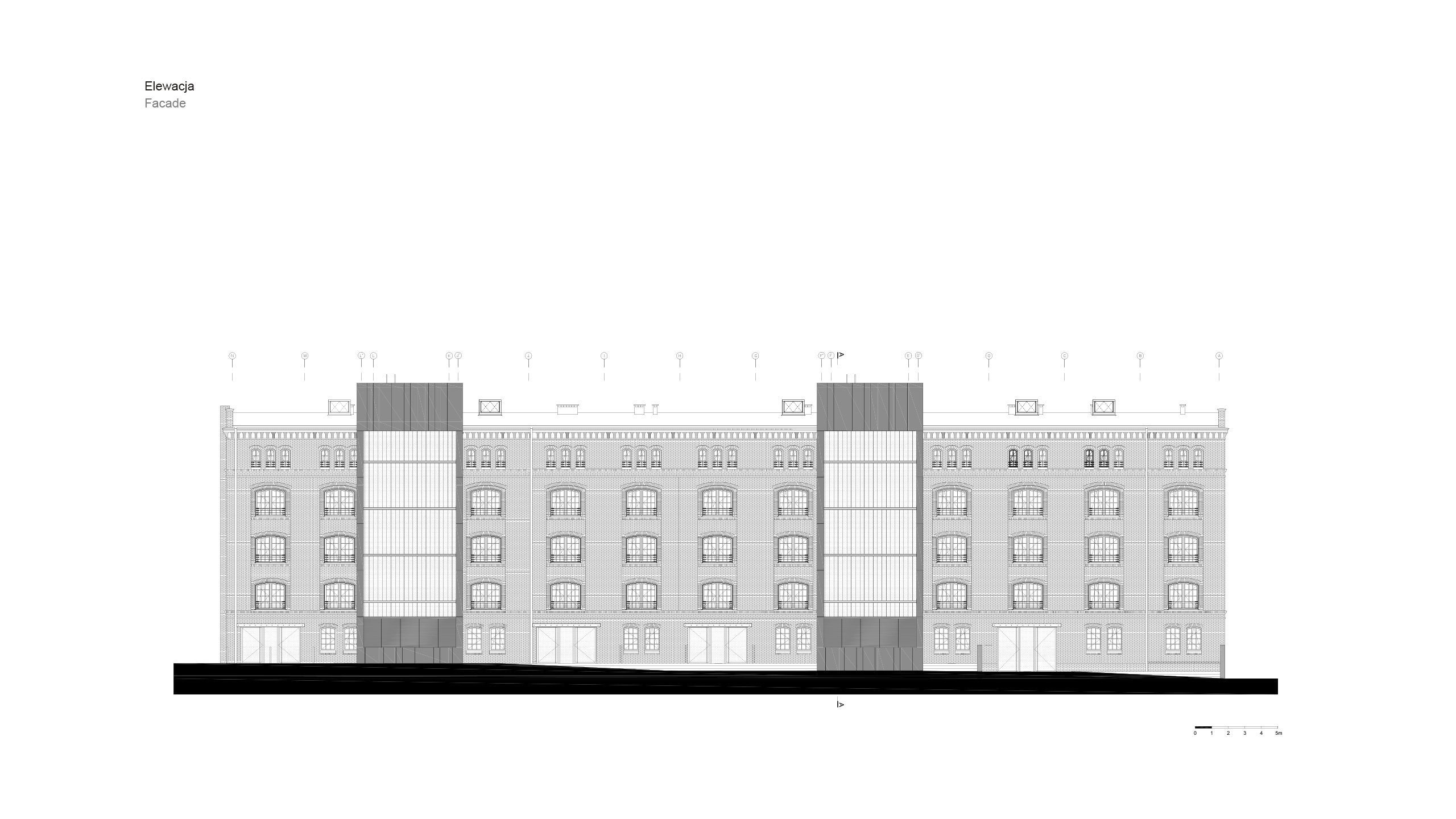 Budynek zabytkowego spichlerza znajduje się w atrakcyjnej części Gliwic wypełnionej niską i średniowysoką zabudową rezydencjonalną, co jest rzadkością w lokalizacjach obiektów poprzemysłowych. Pierwotnie służył jako magazyn zbożowy, a w okresie powojennym jako magazyn leków przy przyległym Szpitalu Wojskowym. Adaptacja nie zakładała znaczących zmian w bryle budynku, jedynie z uwagi na zaprojektowany układ mieszkań dobudowano dwa zewnętrzne trzony komunikacyjne pokryte stalą Cor-Ten. Pomiędzy nowoprojektowanymi trzonami komunikacyjnymi zaprojektowano taras z drewna egzotycznego poszerzający funkcje usługowo-handlowe zlokalizowane w parterze. Elewację budynku poddano renowacji oraz konserwacji, usunięto oryginalną ślusarkę żeliwną, a w jej miejsce osadzono drewnianą stolarkę spełniającą wymogi termiczne. Mając na względzie powtarzalny układ kondygnacji, oparty na konstrukcyjnej siatce drewnianych słupów, założono możliwość wpisania różnych wariantów zagospodarowania funkcjami mieszkalnymi. W parterze przewidziano usługi, funkcje handlowe lub biurowe w przestrzeniach typu open space, z możliwością dowolnej aranżacji przez przyszłego klienta. Wnętrza mieszkań oraz lokali usługowych pozostawiono w oryginalnym charakterze – surowa cegła oraz drewniana konstrukcja w naturalnej barwie. Elementy te poddane zostały jedynie oczyszczeniu oraz impregnacji. Wewnętrzne klatki schodowe odrestaurowano, a do ich wnętrza wprowadzono dźwigi współczesne.