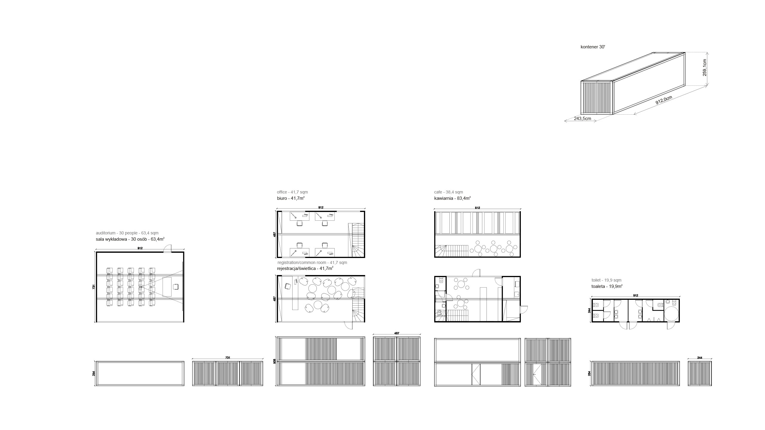 Wstępna koncepcja kontenerowych sal dydaktycznych dla PWSFTViT w Łodzi