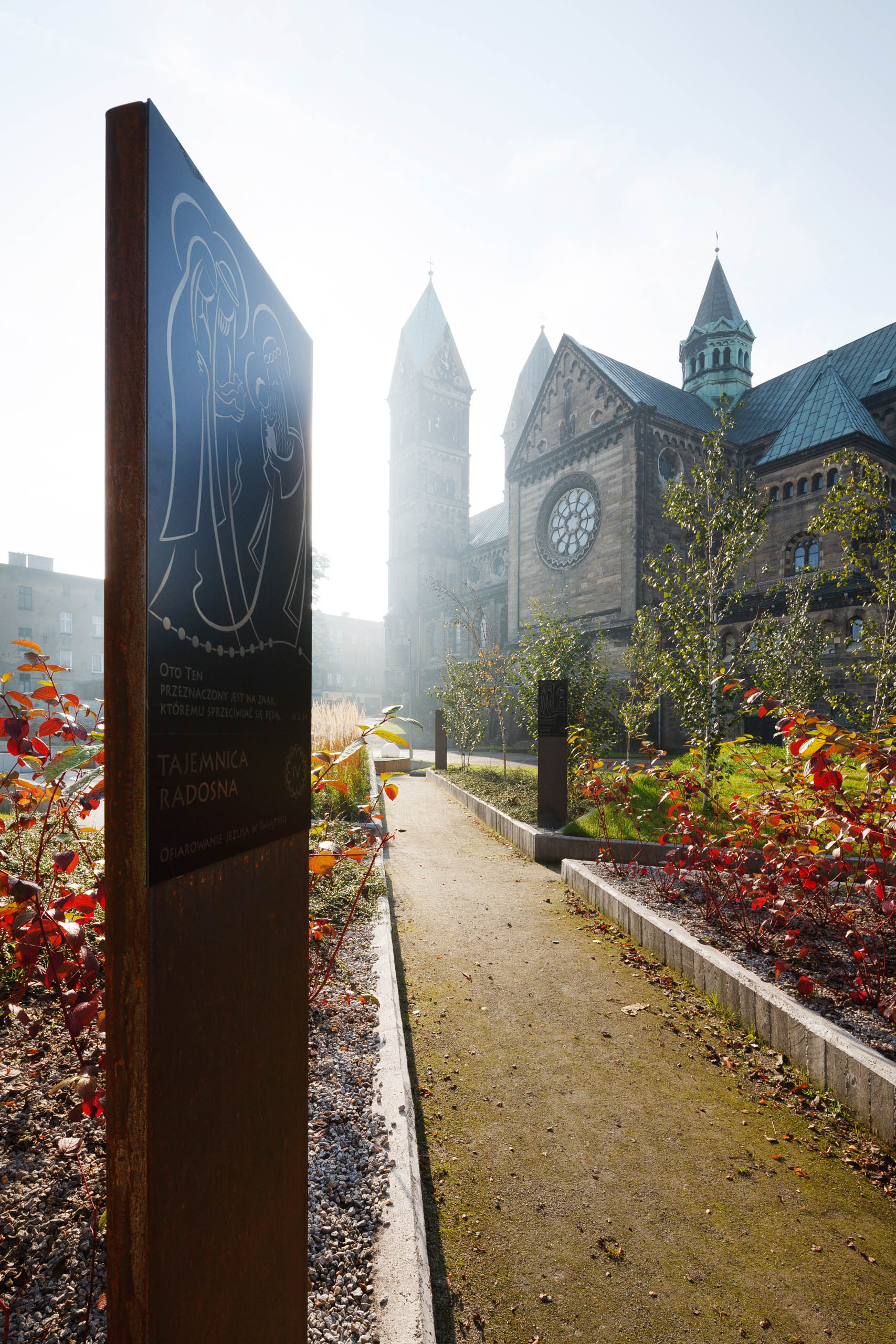 Z inicjatywy Parafii rzymsko-katolickiej p.w Św. Jacka oraz samych parafian, w zdegradowanym społecznie i ekonomicznie centrum dzielnicy Rozbark w Bytomiu, powstała nowa przestrzeń publiczna służąca lokalnej społeczności. Przestrzeń bezpośrednio przylegającą do kościoła połączono funkcjonalnie oraz estetycznie z terenem dawnego skweru, który przekształcono w ogród różańcowy, nawiązujący do lokalnej legendy o św. Jacku. Teren ten o charakterze religijnym stanowi kompozycję będącą tłem dla monumentalnego gmachu świątyni. Poza ogrodem głównymi elementami całego założenia są dwa pawilony związane z prowadzoną przez parafię działalnością edukacyjno-kulturalną.